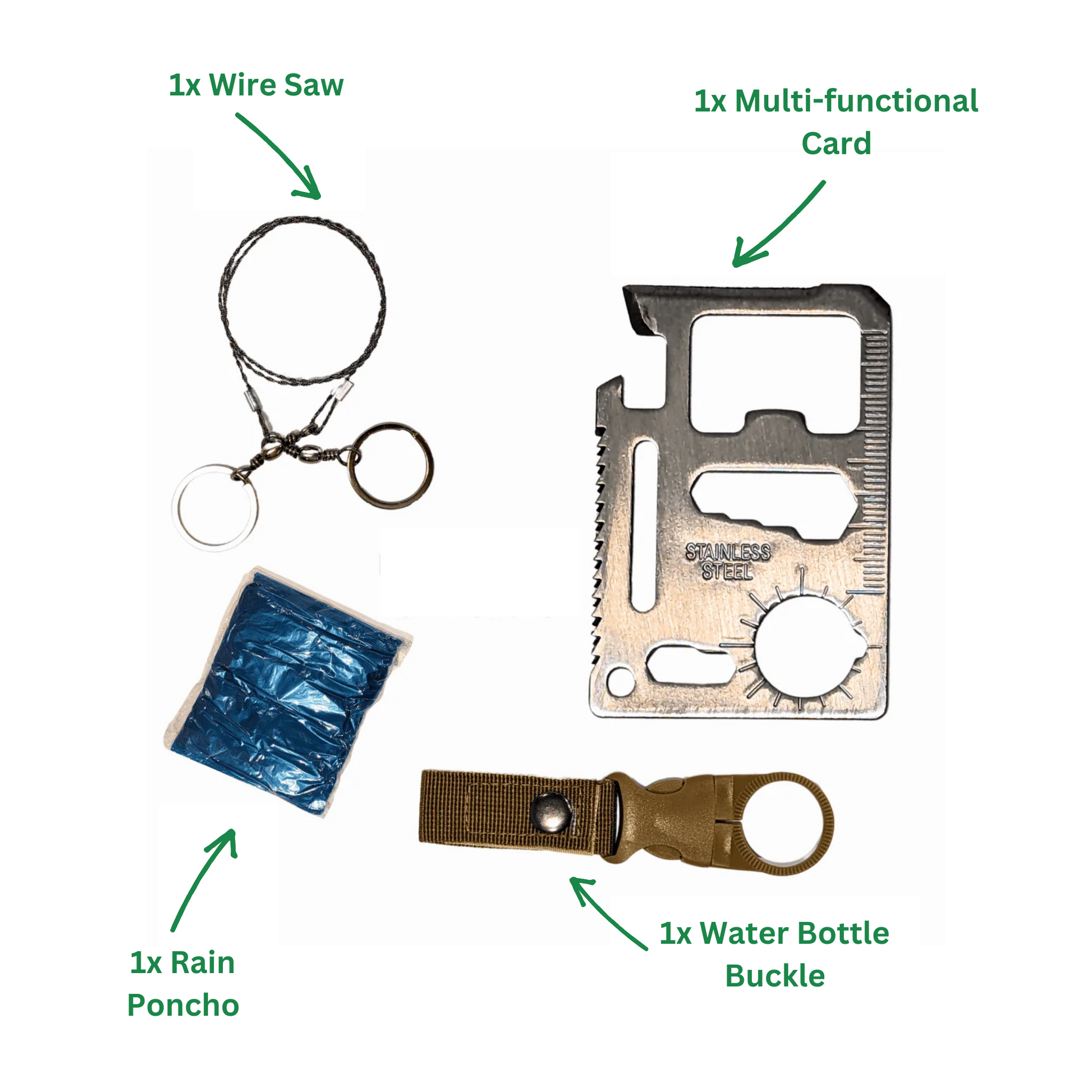 Crafted by adventurers, for adventurers, the Bushman Tactical Emergency Survival Kit has been tailored to meet the needs of camping and hiking enthusiasts of all levels.